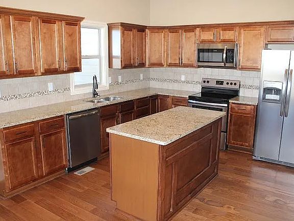 Spacious 5-Bedroom Home with Lake Views in Quiet Southeast Neighborhood This stunning home offers 5 bedrooms, 3 bathrooms, and a 3-car garage, along with a fully finished basement that opens to the backyard. Enjoy an open-concept layout featuring vaulted ceilings, hardwood floors in the kitchen and living areas, and a cozy gas fireplace with decorative stone. The large kitchen boasts an island, pantry, and ample counter space perfect for cooking and entertaining. The luxurious primary suite includes a coffered ceiling, walk-in closet, and spa-like bathroom with double vanities, a walk-in shower, and a relaxing soaker tub. Step outside to a large patio and covered deck overlooking a peaceful lake ideal for morning coffee or evening gatherings. Neighborhood amenities include a community pool, playground, and scenic walking path. Conveniently located just minutes from highways and shopping. Lawn care included . The landlord will maintain the front and backyard, so you can relax and enjoy your home worry-free. Schedule your private tour today! 12 months lease. Tenant is responsible for all utilities including gas, electric, water, trash. Last month's rent due at signing. Small dog or cats may be allowed. No smoking allowed.