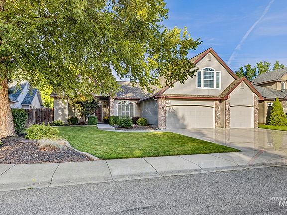 This meticulously kept home is nestled within a gorgeous community that is filled with mature trees, extensive walking paths, and a 7-acre park with a large playground, tennis, pickle-ball, and basketball courts. Main level split bedroom easy living floor plan with the extra large primary suite offering a recently remodeled spacious shower and easy access out to the lovely covered patio. The office boasts beautiful light-filled views for those who have the pleasure of working from home. Upstairs you will find a large bonus room with its very own bathroom - perfect for guests! Minutes to I-84 for easy access anywhere in the valley. The West-Ada library, an elementary school, grocery stores, post office, and restaurants are right around the corner. With a brand-new roof, newer appliances, newer exterior and interior paint, and a very sizable 3-car garage, you'll want to call this one 'home'.