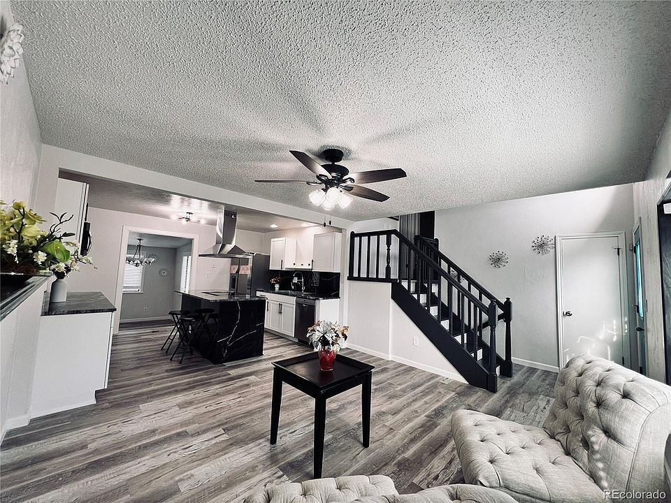 The updated kitchen boasts granite countertops, a sleek marble backsplash, brand-new stainless steel appliances, and contemporary lighting fixtures—a true chef’s delight. Zero Carpet.Waterproof Vinyl Plank Flooring. And Vinyl Sheet.
