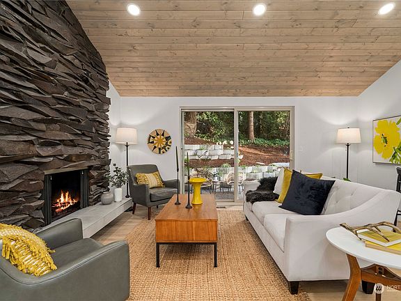 Step into this completely updated mid-century modern home & enjoy true upscale living + ultimate comfort. 4 bedrooms, 3 baths with Primary en suite, this open floor plan allows for seamless flow between two generous living spaces, highlighted by vaulted ceilings, 2 fireplaces, wet bar & spacious laundry room. Experience expertly curated bespoke finishes throughout, like custom cabinetry, quartz & marble countertops, beautiful millwork & tile. Recently completed major system upgrades include new insulation, roof, high-efficiency HVAC with A/C, siding, all-new appliances, windows & more. The backyard is perfect for entertaining, w/ a fire pit, patio & lawn space surrounded by lush greenery. 2-car garage pre-wired for EV charger. Welcome home!