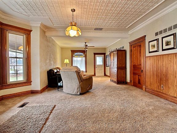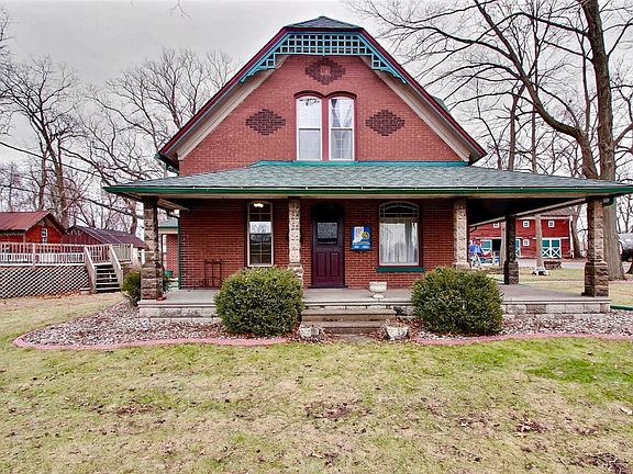 Once in a lifetime opportunity to buy a remodeled red brick farm house. Home was built in 1897 & features 2300+ sf, 5 beds, 2 baths on 6 acres. Master suite includes full bath! In 2000, new addition with kitchen/laundry room. Renovation of dining room (once kitchen) and bath, electrical updated to 220. All windows replaced. 2car garage built in 2013 and roof is only 8 months old! Lennox HE furnace new in 2017. But don't think the character was compromised! This home has the original tin ceilings, pantry, built-in china cabinet, wood trim and colored, pressed glass in front window, plus more. Wrap around front porch, plus brick patio out back. Property includes 4 original barn/sheds. In the same family for the past 121 years. See plaque by the front door commemorating the home as a Hoosier Homestead Farm.