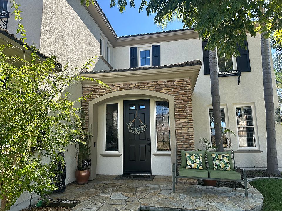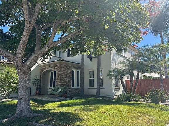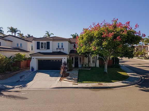 Beautiful 2 story house a peaceful neighborhood. Plantation shutters throughout and real hardwood floors on the lower level give this house an elevated vibe. Recently installed high-end carpet, baseboards, new bath fixtures as well as high ceilings elevate the appeal. It is painted in relaxing shades of greys and blues. There is plenty of space for a family and has a dedicated work space. Attached 2 car garage and a quiet corner lot near hiking trails and shopping with easy access to 5, 15, and 78 freeways. Very close to Carlsbad and in a great school district.