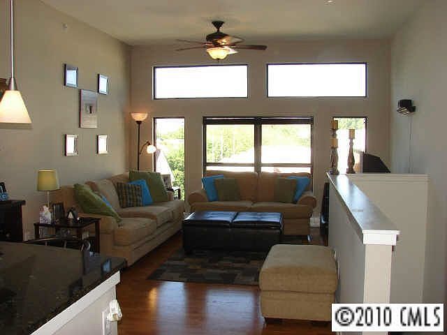MOTIVATED SELLER!! Top unit with fabulous views of uptown skyline through wall of windows! Open plan w/ hardwood floors on both floors, granite countertops, stainless appliances, cherry cabinets. Lg master w/ spacious custom closet & dble sink bath. Fantastic location! Walk to restaurants, light rail, parks & shops. Great deal for popular South End location.