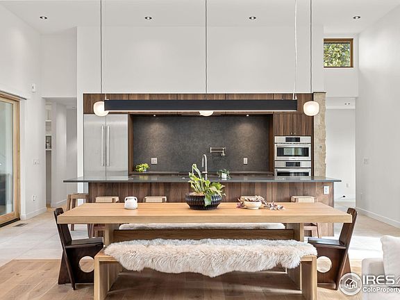 Welcome home to this stunning north Boulder residence where indoor and outdoor living are seamlessly combined. This modern masterpiece, built in 2023, features a main floor primary bedroom and a detached accessory dwelling unit (ADU), offering the perfect combination of luxury, efficiency, and versatility. Situated on an expansive 0.42-acre lot, this fully electric home is designed with sustainability in mind, boasting an owned 11.8k PV solar system and well irrigation. The open-concept living area seamlessly blends sleek design with comfort, featuring floor-to-ceiling windows that fill the space with natural light and create effortless indoor-outdoor transitions. The gourmet kitchen is a chef's delight, complete with top-of-the-line Bosch appliances, custom walnut cabinetry, and a spacious island perfect for entertaining.The main floor primary suite serves as a serene retreat with luxurious finishes and direct access to the backyard oasis. Upstairs, you'll find two additional bedrooms, a bathroom, and a large deck ideal for relaxing and enjoying breathtaking sunsets. The versatile ADU offers endless possibilities, whether used as a guest suite, home office, studio, or for rental income.Outside, the private backyard is an entertainer's dream, featuring a pool, outdoor kitchen, and plenty of space for gatherings or quiet relaxation. An oversized two-car garage provides ample room for vehicles and storage. Located in a desirable North Boulder neighborhood, this home offers easy access to parks, trails, shops, and dining. Don't miss the chance to own this extraordinary property that perfectly blends modern living with timeless comfort. Furniture negotiable.