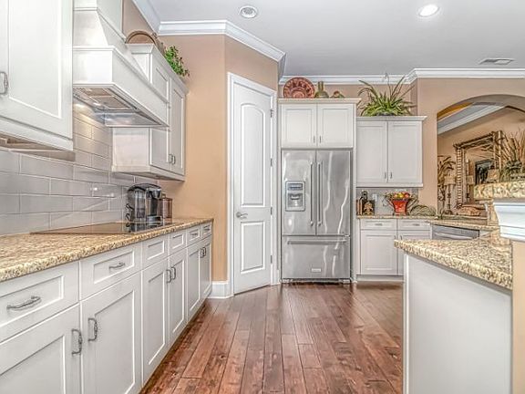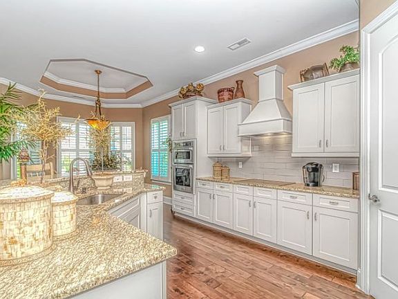 Largest lot in Tuscan Sands, check out the drone view** This gorgeous custom-built Mediterranean style home is located in the highly desirable community, Tuscan Sands, in Barefoot Resort. This one level floor plan offers 4 spacious bedrooms and 3 full bathrooms. When you enter the large double front door you are brought into the foyer which features a tray ceiling with a height of 14 ft. You will notice luxury hardwood floors throughout the main living areas and master bedroom. There is a designated formal dining room with a tray ceiling that is perfect for gatherings. The main living space is an open floor-plan with plenty of natural light and full access to the upgraded kitchen. This state-of-the-art kitchen features granite counters, classic tile black-splash, stainless steel appliances including a wall oven and mircrowave, a cook top with a hood. The kitchen cabinets are upgraded maple linen with crown molding and soft close drawers. Just imagine cooking your favorite gourmet meal here! The master bathroom is exquisite with tile, a large walk-in shower, relaxation tub, double vanities with granite counter tops, and double walk-in closets. Oil rubbed bronze lighting and hardware throughout the home, along with more tray ceilings, and ceiling fans. Plantation shutters and window treatments will convey with this home. Enjoy evenings out on the patio sipping your favorite cocktail. No expense was spared in the construction of this home, book your showing today!