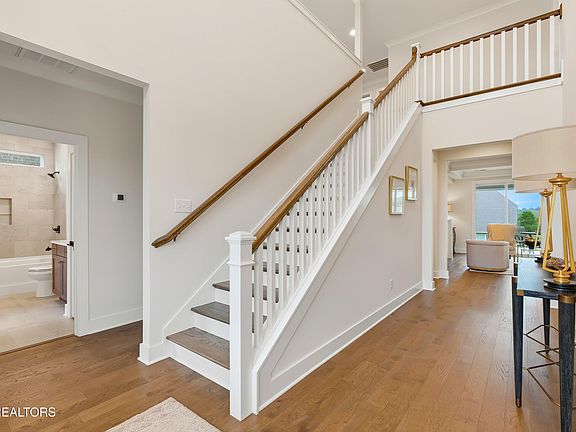 2025 Parade of Homes home in the highly sought after Ironwood maintenance free community conveniently located in Hardin Valley. Stunning Primrose Farmhouse floorplan offers 5 bedrooms, 4 bathrooms and the owner's suite and guest bath on the main level. A lovely double door opens to an impressive 2-story foyer with a designer light fixture, hardwood floors and open handrails. This open floorplan showcases a gourmet styled kitchen with painted white cabinetry, hooded vent, under counter lights, quartz countertops PLUS a gas cooktop, tiled backsplash and the microwave and oven are built-in a tall cabinet for easy access. The Great Room offers a coffered ceiling, a 12080 sliding glass door which leads to a large covered porch with a 4' extension; a TV outlet and gas line for ease of grilling and entertaining. Upstairs you will find 3 large bedrooms, a loft, 2 full bathrooms PLUS a walk-in attic storage area. Your HOA dues include: mowing (front and back), weeding and edging the lawn, mulching once a year, lawn fertilizing and treatment 6 times a yr; irrigation start-up and shut down, trash, streetlights and upkeep of common areas and entrance. Fully sodded yards with irrigation. Enjoy a relaxing lifestyle with no yard work! Be the first to see this beautiful home. Home is complete, but can's close until mid November (after Parade of Homes). Permanent entrance will be constructed after the new around-a-bout located at Marietta Church Rd/Hardin Valley Rd is completed.