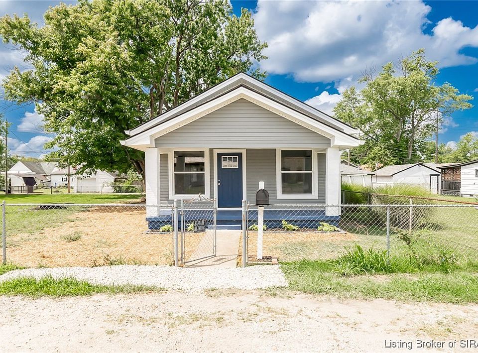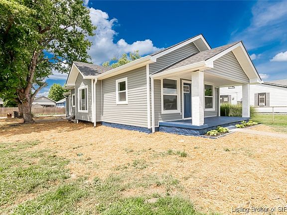 Come check out this wonderfully remodeled 1 story craftsman style home with 3 bedrooms and 2 full baths and a partially finished basement! This home shows like new construction! New roof! New windows! New siding and gutters! New kitchen and baths! Fresh paint! New flooring! New lighting! Updated electric and plumbing! New water heater! New A/C and new ductwork! Great space in the home and a great location near downtown New Albany! The covered front porch welcomes you home! As you enter the front door, you'll love the open floor as the living room flows into the dining room and the beautiful kitchen! The kitchen features granite countertops, a room island with the sink overlooking the living area, new white shaker style cabinets, ceramic tile backsplash, and a pot filler! The brand new stainless steel appliances will remain the sale! The hall bathroom is all new and has ceramic tile! The spacious primary bedroom is the perfect retreat after a long day and has an en suiite bathroom with ceramic tile! Rear patio! Off street parking for 2 cars behind the home! This home is ready to move in! 100% financing and low down payment options available for qualified buyers! Call today for details and to schedule a private showing before this home is SOLD!