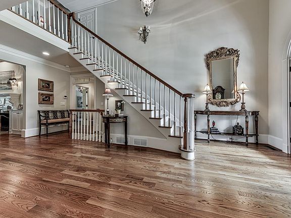 SUNNING SOUTHERN LIVING FLOOR PLAN. Lightly lived in by Original Owners. Welcoming Front Porch w/Gas Lanterns & Barreled Ceiling. CHEF'S KITCHEN has all the Bells & Whistles/Butcher Block Center Island, Double Oven & Warming Drawer, Built-in Spice Drawer, Cutting Board & Trash Pull Out. Breakfast Room has a Built-in SideBoard (great for Large Platters & Table Linens). Butlers Pantry w/Beverage/Wine Chiller. FIRESIDE KEEPING ROOM Vaulted with Wood Beams. Custom Built-in Cabinetry with Hidden Speakers & Atrium Door to Porch. Grand Room features a Two-Sided Fireplace, Intricate High End Mill Work, Coffered Ceiling & Double French Doors to FABULOUS SCREENED PORCH & DECK. Banquet Size Dining Room flanked by Fluted Columns. OWNERS SUITE W/Bayed Sitting Area, Fireplace & Built-ins. Impressive EnSuite w/Furniture Style Cabinetry, Large Walk-in Shower/Dual Heads and Spa Tub. Custom Owners Closet has a Center Island, Valet Bars, Clothes Hampers & Built-in Ironing Board. Three Large Bedrooms on the Upper Level all with Private Baths. Walk-out Terrace Level leads to a covered Stone Patio with Fire Pit & Grill Area with Lake Views. Movie Room has a Built-in Bar w/Sink and Beverage Fridge. Billiard Room. Bedroom w/Private Bath. Don't miss the Cedar Closet and Hidden Safe.