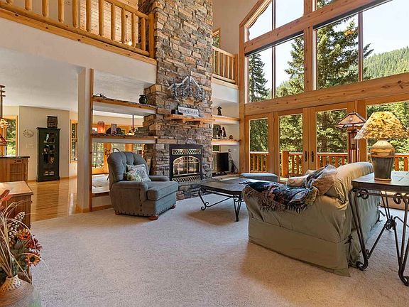 Single owner, custom built log home, bordered on 3 sides by USFS land! *Features like the half-log interior stairs and siding, soaring 2-story vaulted ceilings, solid birch doors, 2 fireplaces, oak plank hardwood floors throughout main level and more make this home a must see! *4 bedrooms and 3.5 bathrooms *Main floor is an entertainer's dream with an oversized living room with floor to ceiling windows, soaring 22' vaulted ceilings and a double sided gas fireplace with rough hewn pass through shelves *Nearby formal dining area opens to the spacious kitchen with an appliance suite, upgraded cabinetry with under-mount lighting, a large storage island with granite countertop and a cozy breakfast nook *Main floor master suite has french doors, 2 closets, and a 4 piece ensuite bath with double sinks, a walk shower and separate toilet room *Main floor laundry *Upper level has 3 bedrooms, 1 bathroom, a corner office, loft library overlooking the living room and a bonus area over the garage