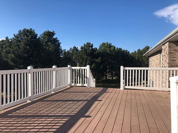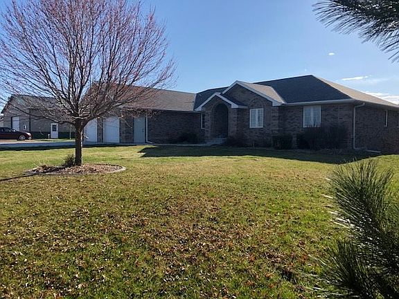 Private country oasis. One owner acreage home built in 2005. All brick exterior with pine shelter belt and well landscaped. Main floor has living room with fireplace, formal and breakfast dining spaces, kitchen with island sink, corian counters, tons of storage, eating bar and all appliances. Off kitchen is large mud room/entry with separate home office space. Garage has poly finished floor and pull down ladder and hot/cold running water. There are separate craft/hobby/sewing room and huge main floor laundry room with built in ironing board and cabinets with laundry sink. Master bedroom completes the main floor featuring jetted tub, large tiled shower and walk in closet with many built ins. The basement level has lots of daylight with double egress window in family room and egress windows in all of the 3 bedrooms. All bedrooms are of generous size will plenty of storage in each one. There is a full bath for the basement level. The home is all electric with water source heat pump, dual 50 gallon water heaters and water system. Plenty of space in the mechanical room for other dry storage. The outbuildings consist of a 42' X 64' radiant heated divided building with 3 overhead doors. The second building is set up for horses, 4H animals, etc. It is 26' X 36' with storage room, part concrete flooring in building with other space dirt that leads to attached animal pens. Very well maintained home and property inside and out.