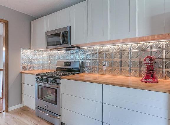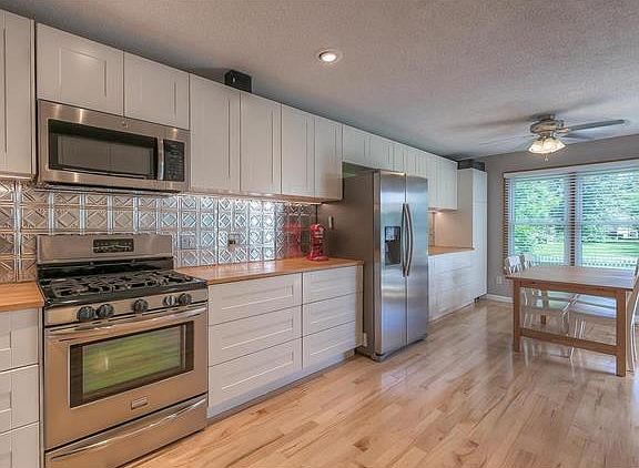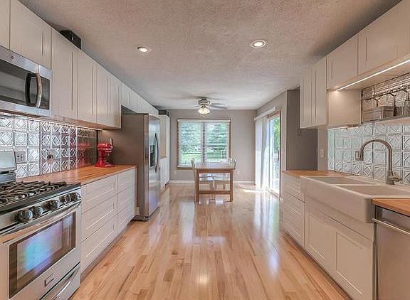 Stunning kitchen that was completely remodeled w/ butcher block counters, tin back splash, double basin sink and soft close cabinetry and all new appliances. Fresh neutral paint and sky high ceilings make the living space bright and inviting. Bedrooms all on the main level with a large Master Suite. Lower level finished could be used for family room, office, or playroom. Deck offers room to entertain and overlooks large fenced yard. Great neighborhood and location with several parks and amenities nearby.