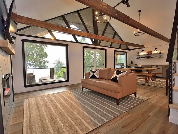 This beautifully remodeled secondary waterfront cabin on Lake Coeur d'Alene's Cave Bay combines contemporary luxury with charming lakefront appeal. Just 35 minutes from downtown Coeur d'Alene, it offers year-round comfort, accessible via well-maintained paved roads. The open-concept main level features luxury vinyl plank flooring throughout. The living area showcases stunning open wood beams, a vaulted ceiling, and elegant tongue-and-groove detailing. Large picture windows capture breathtaking lake views, while sliding doors open to a spacious covered deckideal for relaxing and taking in the serene surroundings. The kitchen is a culinary delight, featuring sleek stainless steel appliances, butcher block countertops, and ample storage. The cozy living room is centered around a modern fireplace, with a dining area offering picturesque lake views. On the main level, you'll find two tastefully appointed bedrooms sharing a stylish bathroom. A staircase leads to a versatile loft area with panoramic lake views, perfect for a remote office or additional bedroom. The full basement has a concrete floor, power, lighting, and washer/dryer. The community offers a marina with a designated boat slip, a playground, swimming and picnic areas, restrooms, and storage for paddleboards and kayaks. This updated home provides an exceptional opportunity to create lasting lakefront memories. All Freedom Path Property Management residents are enrolled in the Resident Benefits Package (RBP) for $55.00/month which includes liability insurance, credit building to help boost the resident's credit score with timely rent payments, up to $1M Identity Theft Protection, HVAC air filter delivery (for applicable properties), move-in concierge service making utility connection and home service setup a breeze during your move-in, our best-in-class resident rewards program, on-demand pest control, and much more! Ask us about our Deposit Waiver Program.