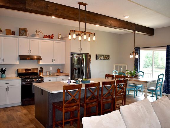 PEACEFUL ACREAGE (3 acres M/L)! Breathtaking Custom Built Ranch in 2017, 4 Bedroom + Office, 3 Bath, attached garage located in a peaceful setting located just a few miles south of Centerville. There is 1,722 square feet on the main level with vaulted ceilings and a completely finished lower level with 9 ft. ceilings. The flooring is upscaled with luxury vinyl planking and lush carpet. You will absolutely fall in love with the open concept kitchen, dining, and living room with wood burning fireplace. This home has a great mud room entry, main floor laundry, and tons of storage. The view off of the back of the home is amazing with huge windows and a covered deck. This property comes with a 30 x 40 building with concrete floor, full electric, and tons of shelving and two 10 ft. doors. If you have been thinking about building your dream home, this one is a "hard to find" one and move-in ready!