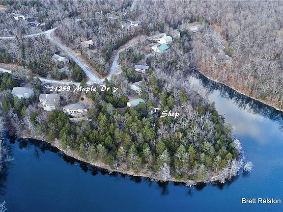 Adorable lake home situated on private lot with nice walk to the lake. Newly remodeled inside with kitchen open to living area. Large decks overlooking seasonal view and gently sloping walkway to the lake. Large detached building with painted concrete floors for storing boats and lake toys. TV, beds, dressers, refrigerator, washer and dryer convey. 1994 Four Winns boat with 150HP Evinrude motor, both in very good condition also convey. Property is not dockable but seller has slip at Lost Bridge Marina which is transferable to new owner.