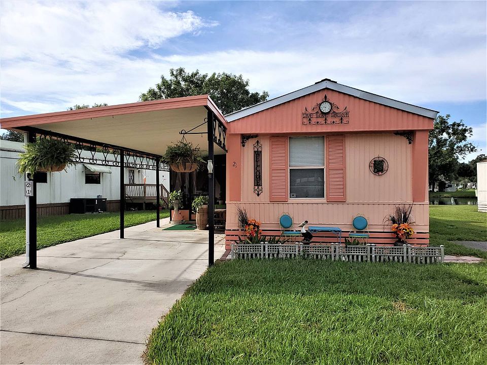 THIS HOME IS ON LEASED LAND WITH A MONTHLY LOT RENT OF $412 AND THAT INCLUDES WATER, SEWER AND TRASH. FULLY FURNISHED 2 BEDROOM / 2 BATHROOM IS AVAILABLE FOR IMMEDIATE OCCUPANCY WITH A BEAUTIFUL VIEW OF THE POND, FANTASTIC BACKYARD THAT IS MADE FOR ENTERTAINING. AND COMPLETELY TURN KEY. KICK BACK AND ENJOY THE VIEW. HOME HAS LAMINATE FLOORING, UPDATED BATHROOMS AND MUCH MORE. 3 SEASONS MHP IS A 55+ COMMUNITY LOCATED IN HISTORIC BROOKSVILLE WITH FANTASTIC NEIGHBORS AND GREAT LOCATION. CLOSE TO EVERYTHING. YOU WILL NOT BE DISAPPOINTED. LIVING ROOM 13 X 14 Good size Living Room with laminate flooring, lighted ceiling fan, window bench for plants, opens to Kitchen. Furniture includes a sectional couch with chaise lounge, TV stand. Everything in the photos. KITCHEN Round Kitchen with plenty of refurbished cabinets and counter space, ceramic tile back splash, laminate flooring, palm tree light fixture, double sink with a viewing window into the Lanai. Eat-in area has a table with 2 chairs. Appliances includes a Amana Stainless Steel Gas stove, Whirlpool side by side ice-maker refrigerator and a counter-top Tappan microwave. MASTER BEDROOM 10'6" x 11 Queen size Master Bedroom with laminate flooring, lighted ceiling fan, massive entire wall length closet. Great storage. Queen size bed, dresser with mirror, matching tall dresser and 1 night stand are staying for you. MASTER BATH Newly painted and updated with a single sink vanity, walk-in shower, 2 linen cabinets, medicine cabinet, raised toilet and laminate flooring. GUEST BEDROOM 10'2" x 11 Full size bedroom with laminate flooring, lighted ceiling fan, another huge entire wall length closet. The Main Bath is also en suite. Furniture includes a full size bed, dresser with mirror and matching tall dresser and a nightstand. MAIN BATH En suite to Guest Bedroom and the hallway with laminate flooring. single sink vanity, medicine cabinet and a walk-in shower. A linen closet is located in the hallway. LAUNDRY Off the hallway with a Samsung washer and a Whirlpool dryer with storage above. LANAI 10 x 14 Off the drive with a lighted ceiling fan, indoor/outdoor carpet and lots of patio furniture. Great place to relax or entertain. EXTERIOR (Where to start) Absolutely fabulous 18 x 19 paver and concrete patio in back of the home with a large Arbor to sit and relax under. Beautiful view of the pond and sunset. This is one of a kind. Plus a firepit. 10 x 11 Storage shed with work bench and plenty of storage and keep cool with a portable A/C unit. 14 x 14 Paver Covered Patio in-between the lanai and shed. Perfect spot a golf cart and grill. 9 x 12 Wood porch off the opposite side of the home with a great view of the pond. 3 x 15 Paver Patio in the front of the home. Great spot for potted plants or golf cart. Tankless hot water heater. I car carport and 2 driveways. Roof is metal Hvac is serviced Home has been freshly painted. 3 SEASONS MHP IS A BEAUTIFUL QUIET PARK LOCATED IN HISTORIC BROOKSVILLE. LOT RENT IS $412 AND YOU GET WATER, SEWER AND TRASH. PARK OFFERS A LARGE HEATED POOL, EXERCISE ROOM, BILLIARDS ROOM AND A POND. HOSPITAL AND SHOPPING ARE CLOSE BY AS IS BOTH MAJOR HIGHWAYS AND BEACHES. Information is deemed reliable but not guaranteed and should be independently verified through personal inspection by appropriate professionals. American Mobile Home Sales of Tampa Bay Inc. cannot guarantee or warrant the accuracy of this information or condition of this property. The buyer assumes full responsibility for obtaining all current rates of lot rent, fees, and pass-on costs. Additionally, the buyer is responsible for obtaining all rules, regulations, pet policies, etc., associated with the community, park, or home from the community/park manager. American Mobile Home Sales of All listing info Tampa All in Bay Inc is not responsible for quoting of said fees or policies