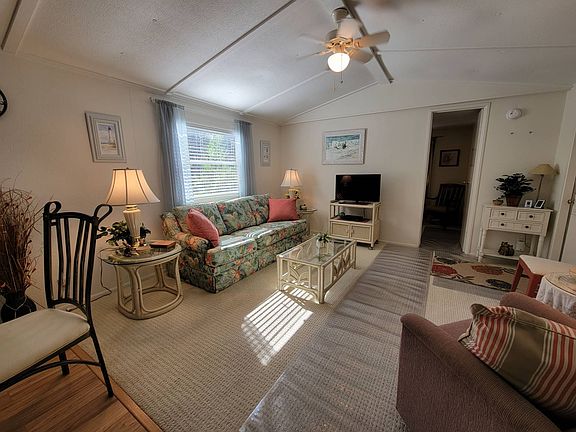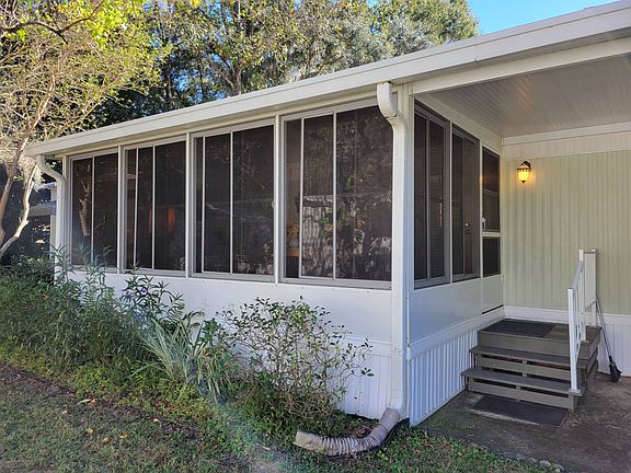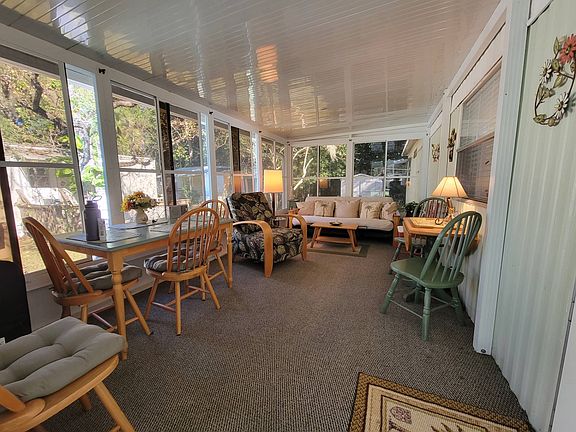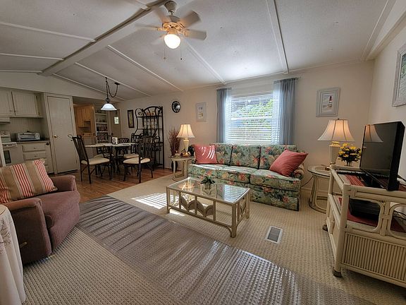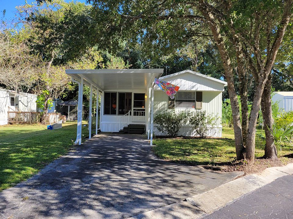 This beautiful park is a 55+ Community with a Club house, Inground Pool, Fitness Center and Billiards room. This meticulously maintained home has everything you need. Beautifully decorated, this home with vaulted ceilings comes Fully Furnished with a New queen size sleeper sofa, washer and dryer. The kitchen offers a new cooktop stove, and refrigerator. White wooden shaker style cabinets with plenty of storage complete the kitchen package. This 2 bedroom split plan with large closets offers Shiny new laminate flooring and Berber carpet. The enclosed Lani has hurricane windows with screens and all windows open. This property also offers a good sized shed and carport. This nice roomy lot is landscaped. Also, it has hard wired smoke detectors. The home has a newer metal roof and the HVAC is serviced yearly. Lot rent is 437.00 a month and includes water/sewer and trash. Buyers will need to pass park approval. There is a bus stop across the street from the park entrance. Close to shopping and medical facilities. Don't wait this will go fast. Built in 1983 and is insurable.