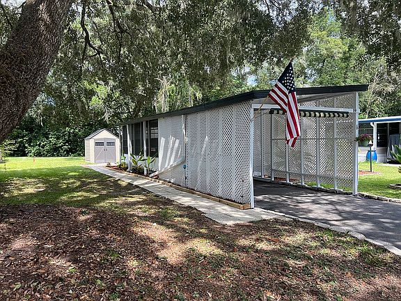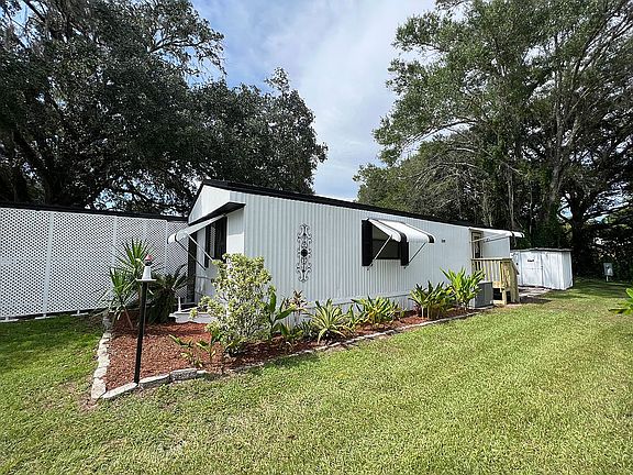 This 1986 fully finished mobil home is located in beautiful Brooksville it features a large yard with a patio and fire pit it also has two sheds. The three season porch is quite and roomy there are big beautiful trees in this park so you are not cooking in the summer sun there is a nice clubhouse with a gym and full size heated pool