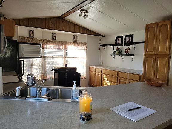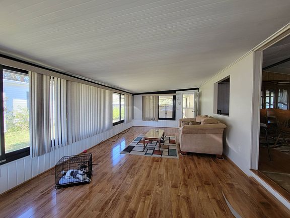 Three Seasons Mobile Home Park Lot 3 Waterfront This beautiful double wide home is located in a 55+ MHP. Waterfront property with lots of storage. Large all weather Florida room with laminate flooring. An open remodeled kitchen with lots of cabinets and counter space. Separate dining room with table and chairs that convey. 2 good sized bedrooms and one bath. Large sunroom that has room to make another bathroom, with open patio. 3 sheds a large patio and carport. The location of this park is great. Close to shopping and other amenities right off 41. Clubhouse, swimming pool, billiards room, exercise center, large pond and gazebos round out the park. All appliances convey. Recent pest inspection and home inspection done.