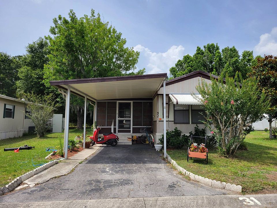 55+ Plus Community in Brooksville. Leased Land Mobile Home Park This very well maintained 2 bedroom 2 bath split floor plan home has a large all weather room that comes furnished. This has a lovely open kitchen with dishwasher and center island. The master and second bedroom has a bath attached. This home comes furnished and some personal items do no convey with home. The floors have been replaced with plywood, newer heat pump, roof and vapor barrier. A large shed is in the back of the property. Very nice sized lot with an attached carport. Enjoy the pool, clubhouse, billiards room and fitness center are some of the amenities in the park. Location is close to major highways, medical facilities and shopping. Brooksville is a wonderful place to live. Come join this great community