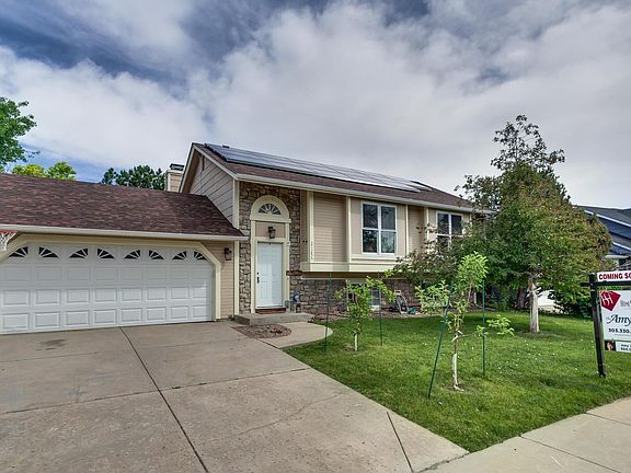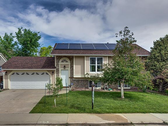 Updated 4 Bed/2 Bath home with private yard in Cherry Creek School District! This fantastic home has an open floor plan with spacious and bright remodeled kitchen - new flooring, new counters, cabinets and appliances. Step onto the deck overlooking a private, fenced back yard with a large patio. Large, bright, and private master bedroom has a walk-in closet and opens to an updated full bath with dual vessel sinks. Second upstairs bath has a walk-in closet. The lower level provides fantastic natural light and a massive family room with wood burning fireplace, two more bedrooms and a 3/4 bath. Sellers will leave the 3 portable A/C units - stay cool with free electricity from solar! Fully owned solar panels, newer roof, new hot water heater, some replacement windows. Newer interior paint and flooring. One block to Pioneer Park with pavilion, playground & soccer field. NO HOA! Close to E470 and Southlands Mall, award-winning Cherry Creek Schools. Welcome Home - Just move in and enjoy!