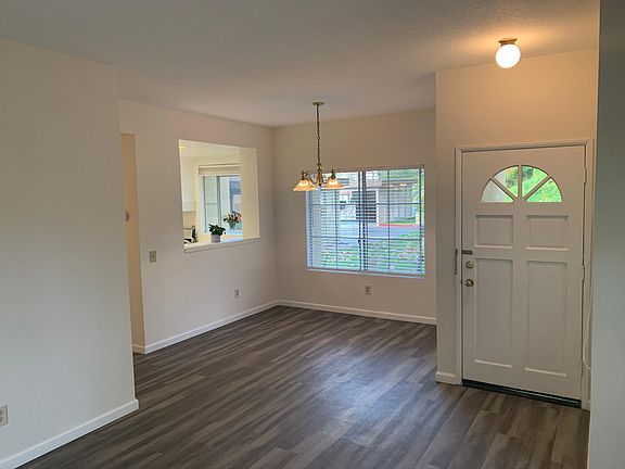 Beautiful LOWER LEVEL end unit condo for lease. This one bedroom, one FULL bathroom is located back of complex with views of greenbelt and hillside. Inside you will find large living room with fireplace, dining room, kitchen, laundry room with stackable washer/dryer, bedroom and full bathroom. Home has been nicely updated with luxury vinyl floors throughout, shower door, fixtures, stove and dishwasher. Outside patio. Condo comes with 1 car carport and storage area in carport. Water/trash included in rent.