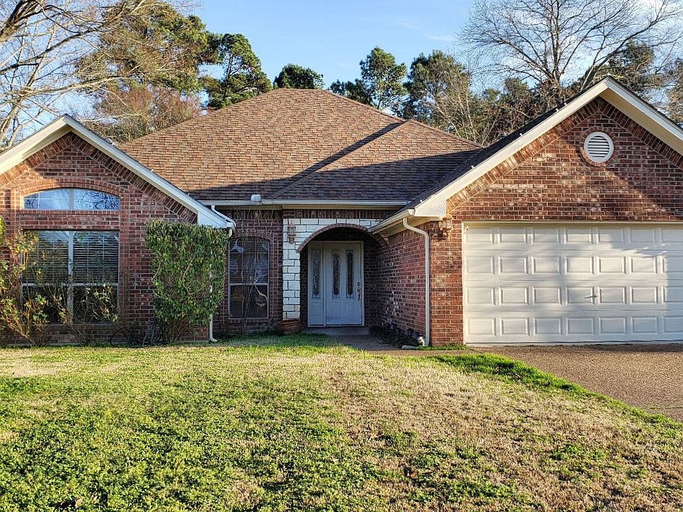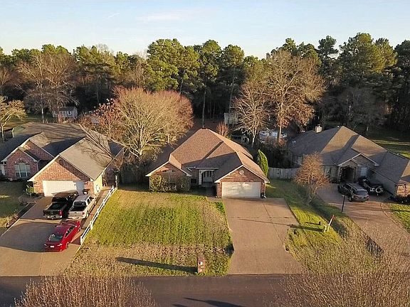 Inviting & well maintained home for sale near Lake Palestine! This 1894 sq. ft. home built in 2004 has 3 bedrooms, 2 baths, and a 2 car garage on almost half an acre lot! Entry hall welcomes you to the light & bright living area with corner fireplace, dining & kitchen with wall of windows overlooking covered patio & large level fenced back yard. Updated kitchen with painted cabinetry, stainless appliances, granite counters, stacked tile back splash and breakfast bar gives plenty of space to enjoy & entertain family and friends. Soft, soothing colors, crown molding & wood & tile flooring throughout living areas welcome you to this upgraded home. All bedrooms have walk-in closets. Master bedroom is split from the two guest bedrooms. Updated master bath has his & her closets & double vanity with granite countertop, separate soaking tub, and shower with relaxing rain-head faucet. Covered back porch is large enough to lounge with friends and family with wonderful view of the oversized backyard and natural woods beyond. Storage building in back yard is included for all your lawn tools & equipment. Play set stays with the house. Neighborhood has a playground and lighted tennis court. Drop your canoe, paddle board, or kayak into the lake from the neighborhood lake access spot. Bullard School District!