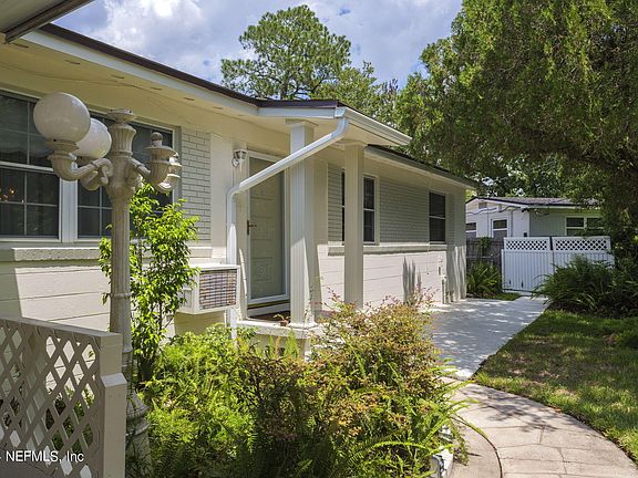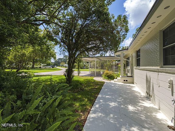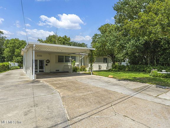 Classic mid-century gem nestled in peaceful, established San Souci. Built in 1956, this original model home boasts timeless character and vintage charm. Spacious layout features 3 bedrooms, 1 1/2 baths in a generous 2,139 square feet of living space; ample room for comfortable living and entertaining. Situated on a large .38 acre lot, the property features a lush, mature landscape, 4 car garage/workshop/mancave, an air conditioned she-shed/storage, and a separate storage building. Power available at the rear of the property, too. The backyard is ideal for outdoor activities, gardening, or simply enjoying the wonder Florida weather. Red Maple, Magnolia and Crepe Myrtle trees grace the property. Recent improvements include NEW ROOF (August 2024), re-plumbed to PVC (2023), new HVAC Ductwork (2023), upgraded blown in insulation (7 years ago), and a mere 7 year old HVAC (package system). Fresh exterior paint seals the deal on this well-maintained classic. Located in the heart of Jacksonville with easy access to shopping, dining, schools, and major highways, your daily commute can be a breeze. Own a piece of Jacksonville's history while enjoying all the comforts of spacious, modern living. 2126 Belinda Circle. Call for your private tour today!
