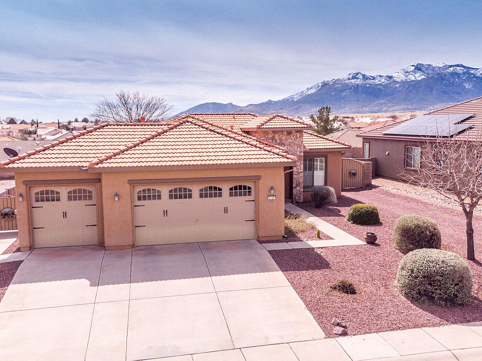 Beautiful One Owner Home w/ Many Custom Upgrades in Coronado Crossing Sub Division with Amazing Views of the Huachuca Mountains w/ 3 Bedrooms, 2 baths, Office/Den, 3 Car Garage, and Full Solar System! The Great Room has a custom Built-In Entertainment Area with Fireplace, Floating Shelves, and Surround sound System! The upgraded Large Kitchen has hickory cabinets with slide-out shelves in lower cabinets, under cabinet lighting, and is complete with granite countertops. The Large Primary Bedroom has beautiful views of the Huachuca Mountains. The Primary Bath Features Dual Sinks, Separate Tub and Shower, and a large Walk-In Closet! The backyard is ready to enjoy a quiet evening watching the sunset over the Huachuca. The list of additional upgrades and attention to detail is too long to list!