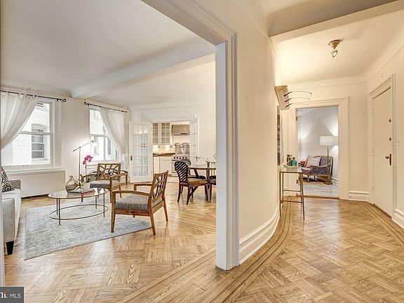 1 Bedroom + Den with 2 Full Bathrooms. Built in 1910, the Dresden Condominium is featured in the popular book "Best Addresses" authored by James Goode. Located in the heart of Kalorama, enjoy distinguished living in one of Washington DC's finest residential buildings resembling the tasteful vision of designer Albert Beers for acclaimed builder Harry Wardman. Large windows illuminate the open spacious living and dining area, which is perfectly suitable for entertaining. Glass French doors enable engagement with the living and dining area from an ergonomically modernized kitchen. Equipped for the home chef, this kitchen features Waterworks fixtures, Artimede lighting, stainless steel appliances, granite countertops, and stunning fossilized limestone flooring. Handsome original oak hardwood flooring throughout is banded in gorgeous walnut trim, defining each living space. A unique curved corridor separates the master bedroom from the living area and the den. Relax and rejuvenate in the large oval shaped master bedroom with abundant storage possibilities. The spa like en-suite bathroom is equipped with Waterworks fixtures, Artimede lighting, a freestanding tub and fossilized limestone flooring. Privately positioned on the opposite side of the corridor is the den that can be used as an occasional guest room or home office. The den has an en-suite bathroom with Waterworks fixtures, Artimede lighting, handmade tile surrounding the shower, and fossilized limestone flooring. Enjoy the outdoors and dramatic sweeping views of DC from the lush roof deck with the conveniences of a covered patio, dining tables, lounge chairs and a well maintained herb garden. $702.84/month condo fee includes: the Unit's Individual Monthly Heating/AC, Electricity and Water usages fees, 24/7 Front Desk Staff, Gym, Roof Garden, Property Management, Common Area Maintenance, Reserve Funds, Master Insurance Policy, Snow Removal/De-icing, Trash and Sewer.