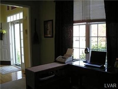 Wonderful East Penn Open Concept Colonial, 4 Bedroom, 2. 5 Bath. 9' First Floor ceilings. 2 Story Open Foyer. First floor Office, Formal Living & Dining Rooms w/Architectural Molding. Bright & Cheery Kitchen w/Center Island, Pantry, and Tiled Floors that opens to Family Room featuring Cathedral Ceiling & Gas Fireplace. Master Suite with Luxury Bath, Tiling, Double Vanity, Large Soaking Tub, Separate Shower, 2 Spacious Walk in Closets with Built-in and an additional area w/Vaulted Ceiling for your private retreat. Finished Basement has 3 separate areas for family fun and entertaining. Anderson Windows throughout, economical Gas Heat. Large Laundry/Mud Room with Storage Closet, Cabinets, & Laundry Tub. New Roof. 2Car Garage. Great outside Entertaining on Deck with Pergola, and Paved Patio. Professionally Landscaped.