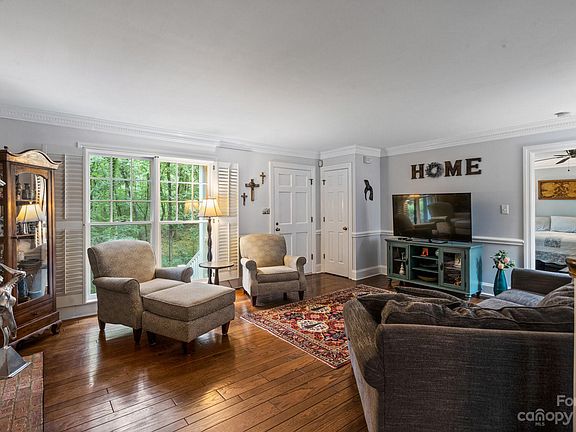 Are you dreaming of a charming home on a private lot? This peaceful setting on 5 acres in Fairview will be perfect for you! You'll fall in love with the many special features including blooming gardens, stone paths, grape vines all arranged in a mountain like setting and offering so much privacy. Spend your free time relaxing in the sun room (w/gas logs) that overlooks a brick patio and beautiful Koi pond with waterfall. Interior features offer a Viking range/oven, walk-in pantry, beautiful hardwood floors and nice family room with gas logs and peaceful views. The main level primary suite includes a large walk-in custom closet, a huge bathroom with double vanities and a zero-entry luxury spa-like shower. Upstairs are two additional bedrooms, full bathroom, large bonus room and play room. Continue the tour to the detached four-car garage, workout shed(with power), and storage shed. You will love this tucked-away private estate while convenient to I-485, Hwy 74 and local shopping.