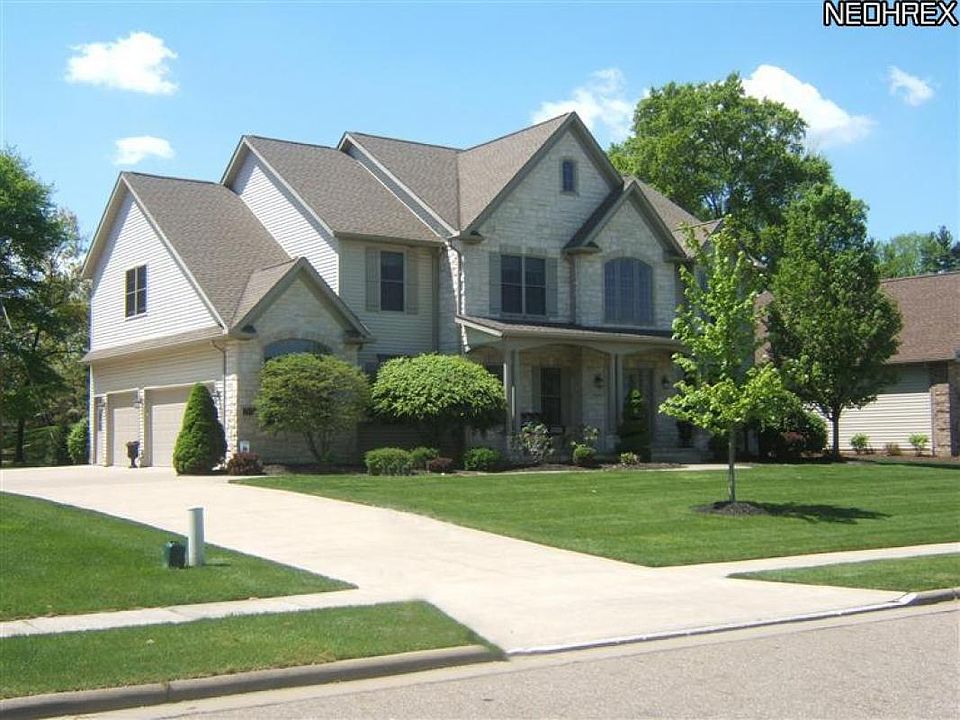 Custom built by Jamestown Homes! Spectacular golf course view! Oversized brick patio with Pergula courtyard and fireplace. Custom landscaped with irrigation system. Two story foyer entry, dual staircases. Kitchen with maple glazed cabinets, center island, granite, built in ovens, counter top range, large dinette area. Luxurious master suite with bayed sitting area, 8' tiled shower, walk in closet. Lower level with full bath, play room, recreation room and separate basement entrance to side load three car heated garage, Jack and Jill bath between 2nd and 3rd bedroom.