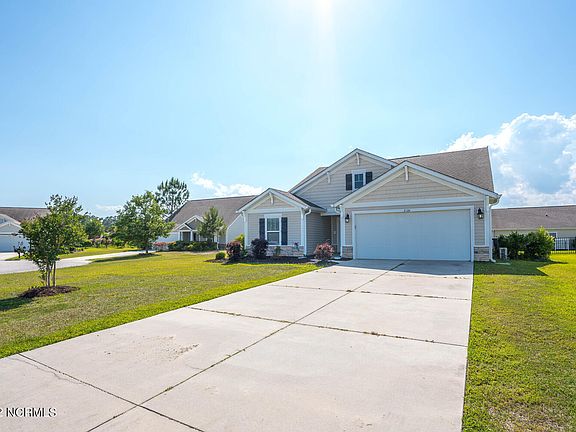 Here is your home at the beach in the sought after community of Spring Mill in Calabash, NC! Large back yard with a gorgeous pond view on a private/quiet cul-de-sac. Screened-in patio out back to enjoy our year-round temperate climate here in NC. The Savannah floor plan features 4BR's/3.5BA's with 3 bedrooms downstairs including the large primary bedroom, 2 guest bedrooms downstairs, and another bedroom and a loft area upstairs with a full bathroom. Entry foyer, a formal dining room, a gorgeous kitchen with tons of cabinet space, granite counters, a corner pantry, and family room combo provide plenty of room for everyone to gather. The primary bedroom suite has a bay window, a giant master bath with double vanity, a large walk-in closet, a linen closet and 5' walk-in shower. Tile flooring in entry, kitchen, utility room and all baths. Open floor plan with a formal dining room and the kitchen overlooks the living room which makes it a great home for entertaining. New top of the line HVAC unit installed in October of 2021 with a 10 year transferrable warranty. This home is eSMART with standard features such as low-e windows, a programmable thermostat, energy monitor, water-saving faucets, and fixtures and more, which translates to lower energy costs. Owners also added a split unit in the garage which they used as a home gym. Great location! Only a 10 minute drive into North Myrtle Beach for tons of shopping/restaurants, but you can enjoy the quiet life in Calabash here. Also only about 10 minutes to the sand on the locals' favorite, Sunset Beach, and a few minutes into the quaint fishing village of Calabash with more shopping and restaurants. Spring Mill also has a beautiful community clubhouse with an outdoor pool, a fitness center, and a lounge area for owners to enjoy. This one won't last long. Book your appointment today to come see it in person!