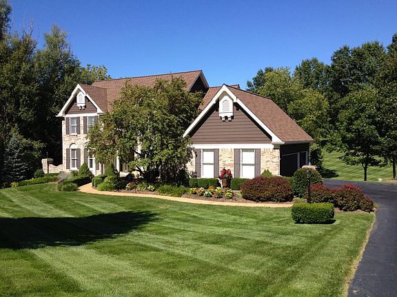 This gorgeous 1.5 story home is situated on over an acre of land, w/ nice scenic views & features 5,000+ sq ft of living space! Enter to find newer gleaming wood floors throughout the ML, a spacious dining rm & a study w/ built-in bookcases. The vaulted great rm boasts a gas fireplace & skylights for tons of natural lighting & opens to the kitchen/breakfast rm area. The updated gourmet kitchen features quartz countertops, center island, double ovens, gas cooktop & adjoining breakfast rm w/ a walk-up wet bar & access to the deck & screened-in porch. ML master suite w/ a walk-in closet w/ organizers & an updated full bath featuring his & her sinks, oversized soaking tub & walk-in shower. The UL has a bonus rm, 3 additional bedrms, an ensuite bath & a Jack & Jill bath. Finished walk-out lower level w/ family rm, rec rm & full bath. Additional features include ML laundry room, patio with firepit, deck, 3 car side entry garage, sprinkler system, new carpet on the UL, newer siding & more!