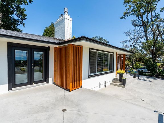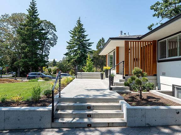 Nestled in the sought-after Henderson neighbourhood is this turn-key beautifully updated 50's home which sits on a spacious 13,200 sqft corner lot. Enter into a generous open concept entertaining area complete w/ dining room & Fr. doors which open to UNOBSTRUCTED VIEWS of the mountains. This home boasts a fully equipped kitchen w/ high end appliances, 3 updated 4-piece bathrooms & 5 bedrooms (3 on the main/2 on lower level). Kitchen Fr. doors open to new patio w/ fully-fenced back yard which offers mature landscaping providing ample privacy. Fully finished lower level has 7 ft ceilings, 2nd living room, bedroom and access to self contained suite w/ 2nd kitchen/living/bedroom & walk out access. Upgrades incl refinished solid oak floors, new carpet, drain tile replaced, new windows, heat pump '23, electrical panel upgr, suite soundproofing, new gutters/fascia, irrigation, outdoor hot wtr hose & more. Easy access to Uplands Park, Willow Beach, Camosun College, UVIC and all amenities.
