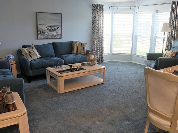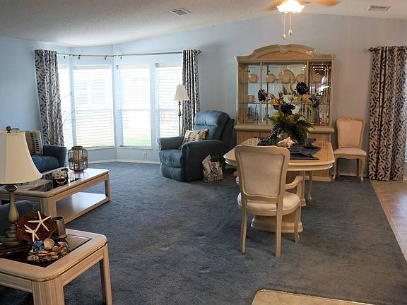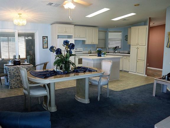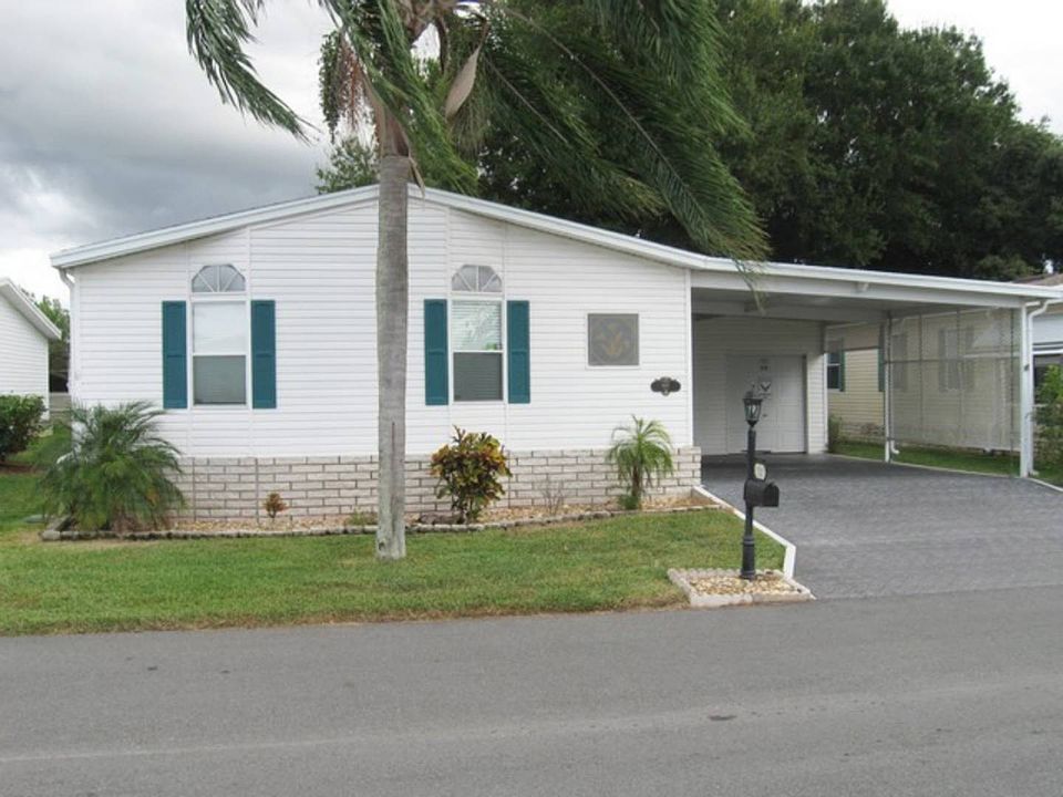 This sharp, well maintained home is located in a beautiful 55+, gated community with homes on lot lease land...... Paying a monthly lot rent of $625.00 gives you and your guest access to the amenities of the community............. This double-wide Homes of Merit manufactured home features two bedrooms, two baths, bright/open floor plan, laundry room, tape and texture walls, bull nosed corners, and it comes turnkey!............. The master bedroom has a large walk-in closet and master bath features French doors, his and her sinks, garden tub and a separate walk-in shower............. The kitchen and dining area are open to the living room...which is great for entertaining...... Sliding doors (with built-in blinds) lead to the 16 X 12 Florida room with glass windows and laminate flooring. ............ The wide deco drive leads to the 12 X 14 golf cart shed ...and yes the golf cart is included! This home comes with everything you will need to move right in and enjoy...... This is truly a must see!