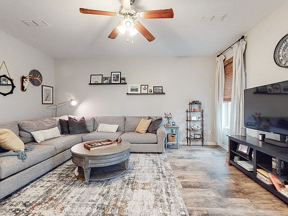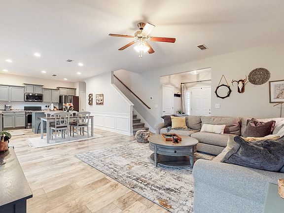 Beautifully maintained home in the desirable Meadowbrook Neighborhood! Upgrades include landscaping, fenced backyard, 2022 black stainless steel kitchen appliances, and new carpet upstairs. Open concept living space is perfect for entertaining. Kitchen island with room for two barstools. Large 32' x 12' backyard patio. Primary Suite with tray ceiling. Separate shower/garden tub and dual sinks in Primary Bathroom with large walk-in closet. Nest thermostats. Move-in ready!