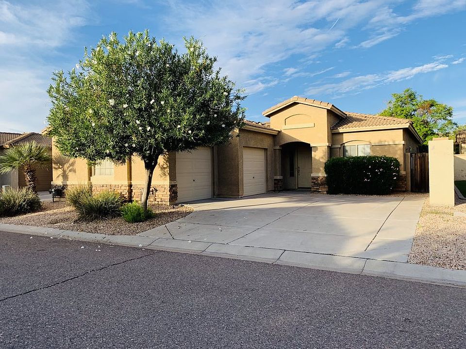 Great corner home in Chandler 2/2 bath and a den featured in this spacious split floor plan, a large living area with an open kitchen and breakfast bar. Beautiful tile in the main living areas and new grey colored interior paint throughout the house. Property is adjacent to a beautiful greenbelt which the HOA maintains. (HOA also maintains the landscaping in the front yard). The backyard includes a drip irrigation system and xeriscape landscaping. Convenient indoor laundry room and a 2 car garage. This home is nicely situated on a quiet street, just minutes from the Chandler mall and close to downtown Chandler. It's a beautiful property in a prime location. Pet friendly to one medium to small mature dog or cat. Contact Dee@rentalsamerica for details. Please note City and admin tax total 3.5%. Application fee $45 per adult;nAdmin fee $200; nFully Refundable Pet deposit $200/pet;nCity tax plus 1% monthly admin fee total 2.5%nHelping Heroes Discount available for First Responders and Militaryn