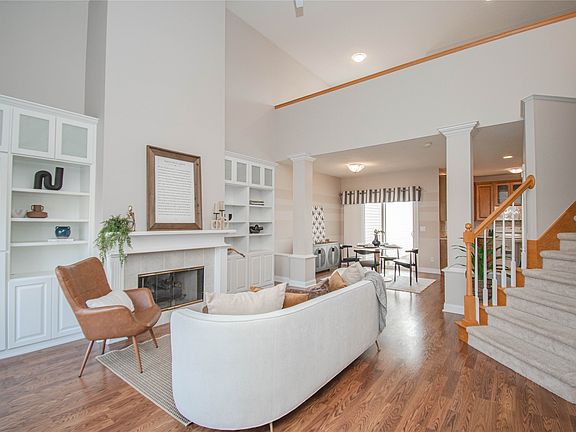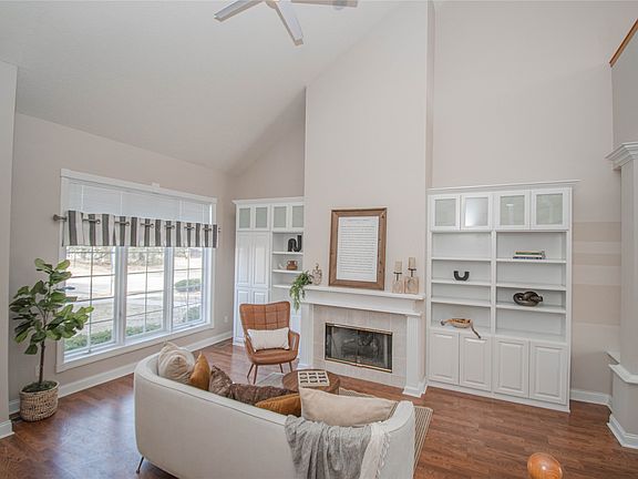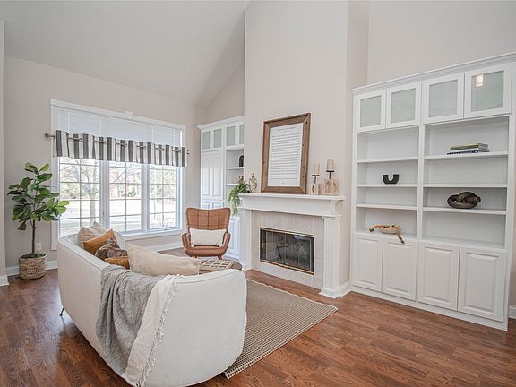 Discover a fantastic opportunity to own this spectacular 1.5-story townhome in Country Club Villas with over 2400 square feet of finished living space. With three bedrooms—one on each level—this home offers exceptional flexibility. The main level boasts vaulted ceilings, built-in bookshelves framing a cozy fireplace, and a perfectly sized primary suite with a ¾ bath ensuite. The dining area opens to a back patio with a sidewalk leading to the garage and driveway. The open-concept kitchen features tall cabinets, an island, and a conveniently located laundry area.