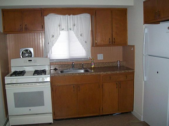 2nd floor: large living room with wall to wall carpeting,kitchen with wooden cabinets and eating area, 2 bedrooms also with wall to wall carpeting,laundry with washer/dryer in unit, tiled hall bath