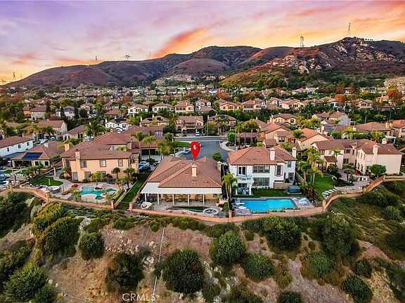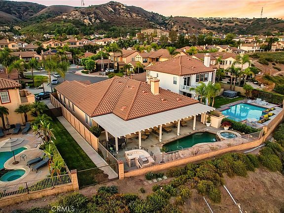 Prestigious Serrano Heights Bellagio single level beauty superbly located perched atop a hillside on a prime lot at the end of a quiet cul-de-sac overlooking Santiago Oaks Regional Park boasting unobstructed awe-inspiring panoramic Ocean, City Lights, Catalina, and rolling hills views. Charming Spanish exterior architectural features, meticulous landscaping, and a gated private front courtyard entrance create a beautiful first impression welcoming you to the home. Pass through the front door with gorgeous leaded glass details and soak in the elegant interior features including stained maple hardwood flooring. To the left of the entry, you are welcomed into the formal living room with stately fireplace, to the right is a formal dining room with built-in wine closet, an elegant space for entertaining. Travel through to the separate family room with an abundance of windows taking advantage of those amazing views, a special gathering space to relax with loved ones around the fireplace. The graceful kitchen is a dream for any home chef with gorgeous Granite countertops, full Granite backsplash, Stainless Steel appliances, double ovens, gas cooktop/range, timeless cabinetry, and a large center island with prized breakfast bar, all open to the Family Room and the sunny Breakfast Nook with direct access to the backyard pool and patio area, providing an ideal indoor-outdoor living space. The Primary Suite is a large peaceful retreat with windows overlooking the backyard and rolling hills, boasting a spacious primary bath with Granite topped dual vanities, elegant lighting and fixtures, jetted soaking tub, step-in shower, and His & Hers walk-in closets with closet organizers. Additional fine features include Crown Molding, Plantation Shutters, Recessed Gimbal Downlighting, a Neutral Paint Palette, and a Built-In Media Center. Prepare to fall in love with the backyard space, a tranquil oasis to enjoy the endless views. Imagine gatherings around the pool and spa with soothing water features, under the spacious covered patio, or gathered around the built-in BBQ & Bar, soaking in the spectacular views and fragrant breezes, truly a space to build life-long memories. Located close to an abundance of outdoor recreation including nearby Serrano Park, Santiago Oaks Regional Park, Weir Canyon, endless hiking & biking trails, close to Villa Park schools, dining, shopping, entertainment, easy 55 Frwy access, and minutes from the Platinum Triangle.