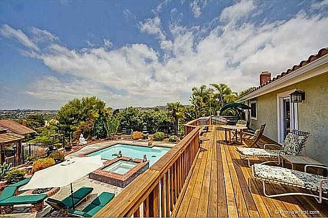 Stunning contemporary two story beauty w/ an open floor plan. Full bed/ bath downstairs. Resort style backyard: Pool, spa, with lagoon and panoramic views of La Costa and beyond. Over 250K in custom upgrades. Designer paint, moulding', fixtures, window coverings. Kitchen, dining room and downstairs bedroom open to back living area. Entertainers dream backyard. Very private/ low maintenance. This one is spectacular. Move in ready. This will sell quickly. Call or text for more info/ EARLY PRIVATE SHOWING (619) 852-4244