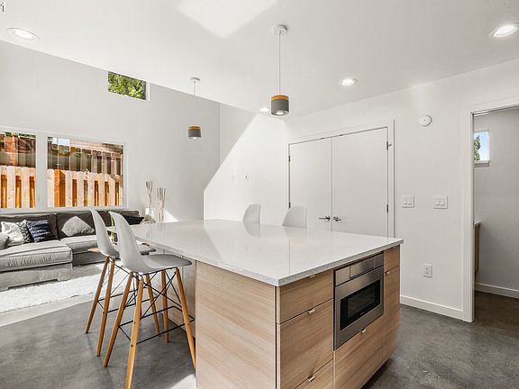 Brand-new modern home in HOT location between Hawthorne & Division! High-end modern finishes. 1 of 2 detached condo homes, each w/fenced yard for pet/firepit. Fenced yard w/sprinklers. Lives large w/ 2-story vaulted living room & dual patio spaces for entertaining/BBQ. Open great room plan. Fabulous kitchen w/quartz counters & SS appliances. 2 beds & study loft upstairs. Light & bright w/territorial views. Welcoming covered front porch. Near shops & restaurants. HES=10, Bike Score=100!
