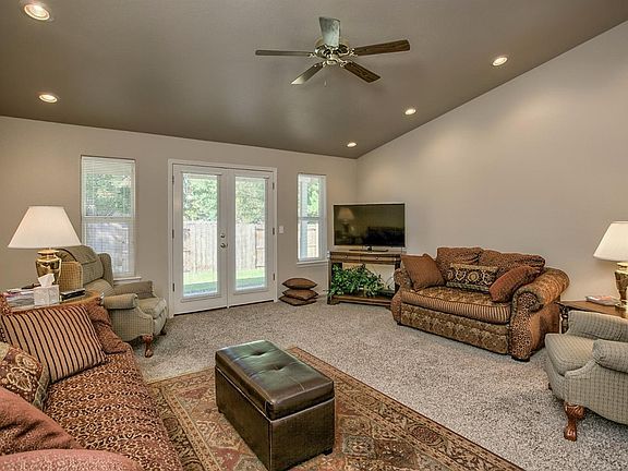 Move in condition single level three bedroom, two bath home with large, fenced backyard, beautiful shade trees, and easy walk to All-Sports Park! Vaulted great room floor plan with spacious kitchen with breakfast bar and plenty of counter & cabinet space. Slider for expanded living on covered back patio. Large master bedroom suite with shower & dual sinks. Laundry room has electric or gas hook-up. Attached 2 car garage. Call for your showing today!