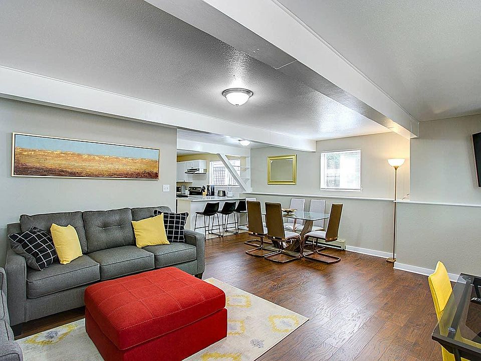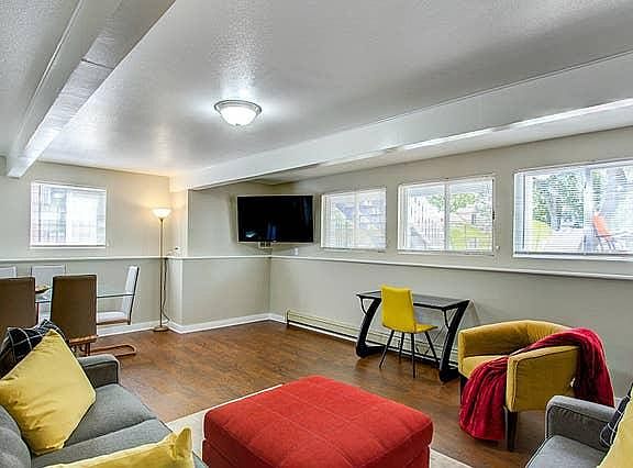 2 Bedroom 1Bath apartment in a Victorian duplex located on Kiowa St in the heart of Old Colorado City. Lower level apartment has a living room with 55" Samsung HD Smart TV, pull out sofa with queen size memory foam mattress, work station, and Wi-Fi. Fully stocked kitchen with quartz countertops with stools. 2 bedrooms with queen-size beds. Outside is a shared fenced in yard with a gas grill and tables. Linens, sheets, and pillows provided. Short Term 30-day minimum rental available. All utilities and wi-fi internet included in rent.
