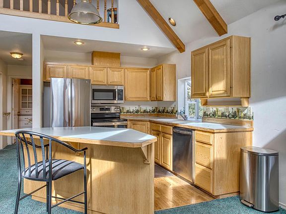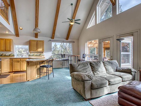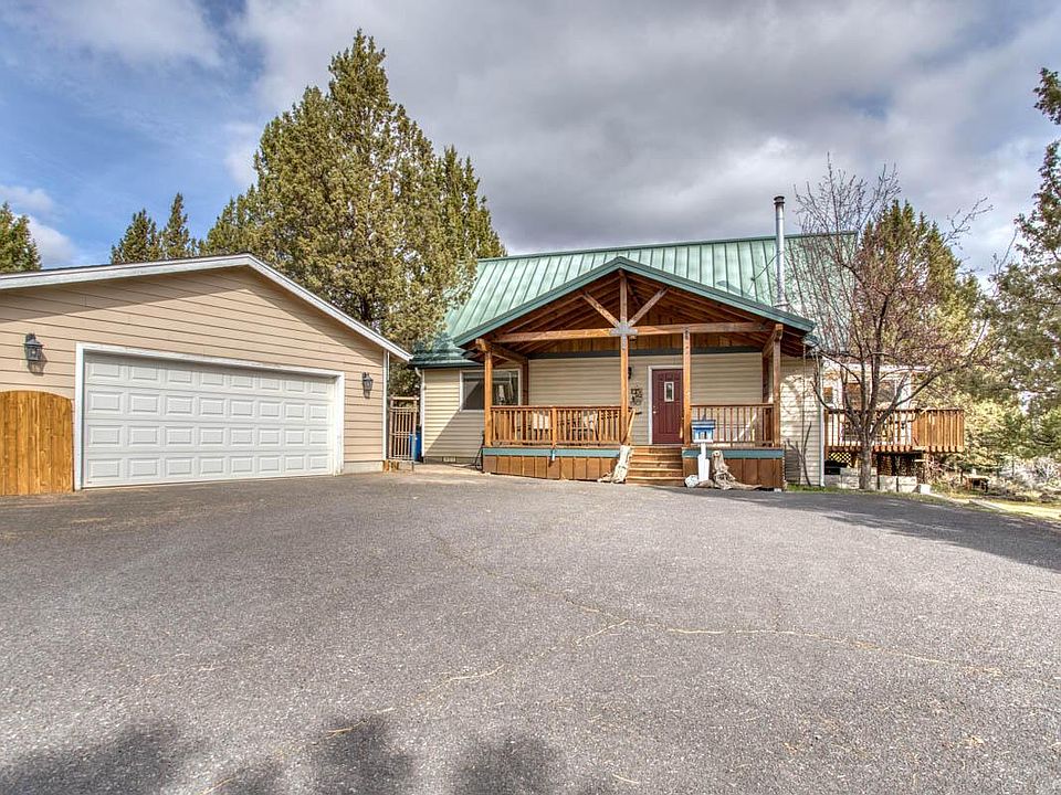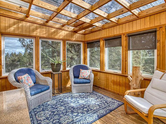 Live in the Central Oregon lifestyle on an elevated 2.5 acre corner lot with fruit trees and spacious lawns. Enjoy your coffee in the sunroom on those bright Bend mornings. One bedroom lives more like a 2 bedroom with an open loft area and half bath. The cheery kitchen has a small island with hardwood floors and stainless steel appliances. RV parking area next to a detached oversized double car garage provides ample storage for all your toys. Nice additional artist cottage for your favorite hobby. Vacant and ready for its new owner.