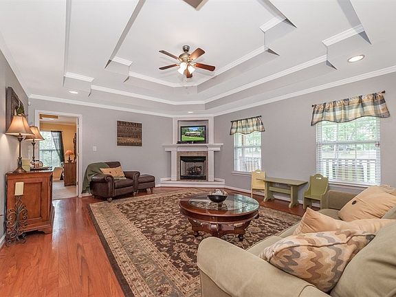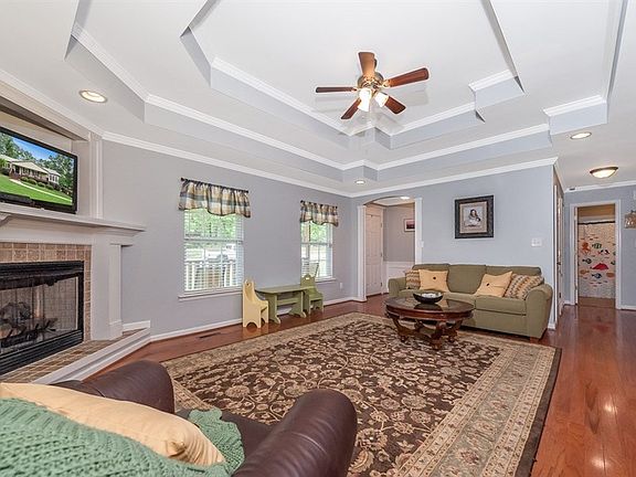 Not your ordinary home...this home is full of decorative molding, open floor plan, split bedrooms, trey ceilings everywhere! You will be wowed when you enter the front door to see the large greatroom that has a double trey ceiling with heavy molding, hardwood flooring & a corner fireplace with a brick surround. An arched opening leads you into the kitchen which has lots of cabinets and features granite countertops & a tile backsplach. Plenty of room to bring your large table into this eat-in kitchen. The master bedroom is spacious with the master bath having tile floors, double sinks, granite countertops, jetted tub & separate shower. Two additional bedrooms with hall bath. Plenty of storage in the unfinished basement. Deck overlooks a nice wooded backyard. Low maintenance with the vinyl siding & eaves. Two car garage.