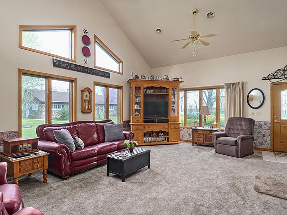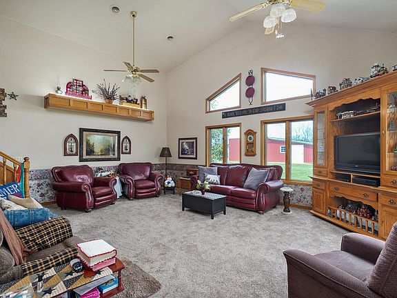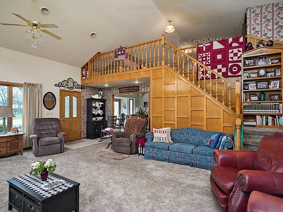 Must see this home with country setting, mature trees and great landscaping. Home was remodeled in 1997. Enter into a beautiful great room with newer carpet and cathedral ceilings, large windows which make it nice and bright. Large dining room & kitchen, 2 bathrooms, and 1 bedroom on the main level the other is a large loft bedroom. 2 outbuildings one is 34x24 and the other is 64x29 and has a nice heated workshop and 1 car garage also The back yard has a garden spot. This all sits on 1.96 acres and just outside of town. 2021-04-15