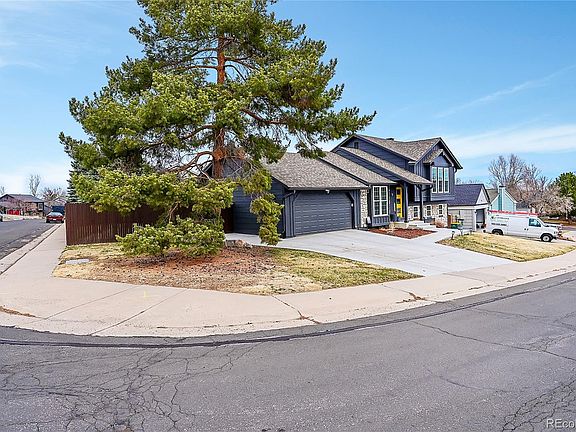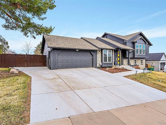 This beautiful well maintained home with lots of upgrades is located in the highly desirable Cherry Creek School District. As you approach, you will notice new paint and a custom front entrance. Inside the foyer the newer windows and custom drapes let in just the right amount of beautiful Colorado sunlight. The family room flows seamlessly across newer floors to the updated kitchen and dining area. The high cabinets and granite countertops frame in the stainless steel refrigerator, stove and microwave, all included. The lower level features new high quality carpet, the living room complete with a wood burning fire place another bedroom and the laundry room, washer dryer included. The upper floor is where the primary bedroom with on suite vanity, walk-in closet and attached primary bath can be found. Two additional bedrooms with all newer windows and matching carpet are located on the upper floor as well. The attached 2 car garage with the access door to the huge backyard make outside activities easy and perfect for entertaining and sports activities. Extra storage in the shed will free up space in the garage. There is also a new expanded concrete driveway and parking area, with no HOA.