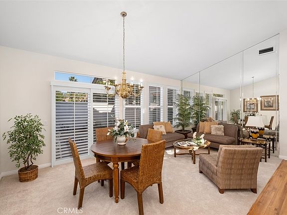 Palmia Senior Community at its' best. This is one of the most popular single-story floor-plans in the community. It features 2 bedroom, 2.5 baths, plus a den, formal living & dining room, 2 on-suite bedrooms, plus a powder room, large eat-in kitchen that opens in the family room with a fireplace. Home is in immaculate condition, freshly painted, light neutral carpeting, laminate wood floors and plantation shutters throughout. Located on a quiet cul-de-sac and a short distance to the club house. Palmia Senior Community is second to none, with an 18 hole putting green, tennis, paddle tennis, pickle-ball, swimming pool & spa, fitness center, bocce, shuffle-board, billiards, card rooms, beautiful club house, many clubs, parties, and much more. You also